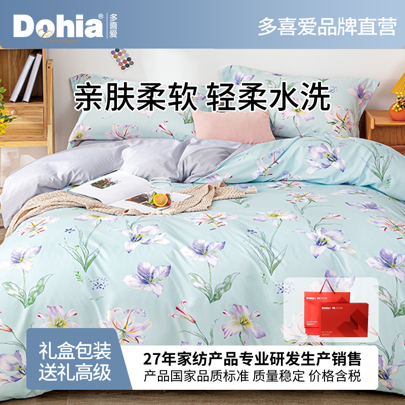 多喜爱美眠康纯涤水洗磨毛床单四件套礼品床上用品被套批发