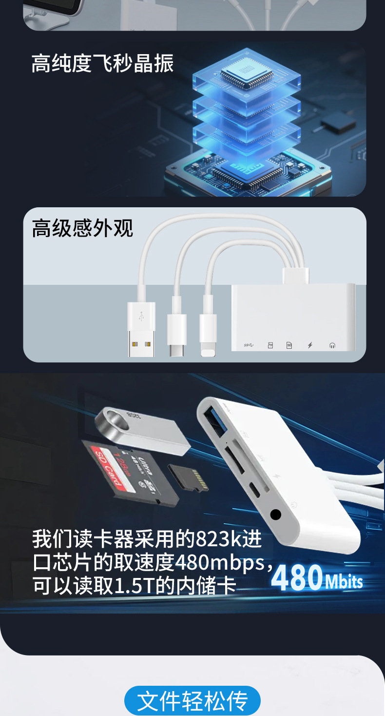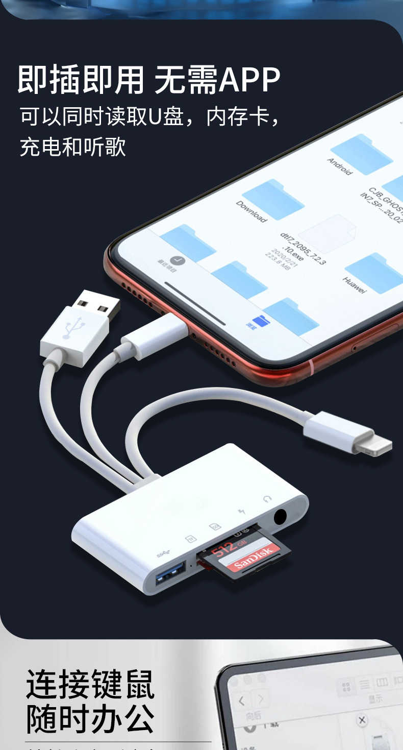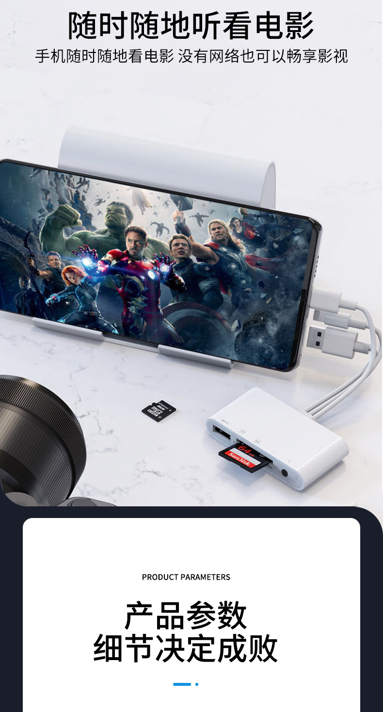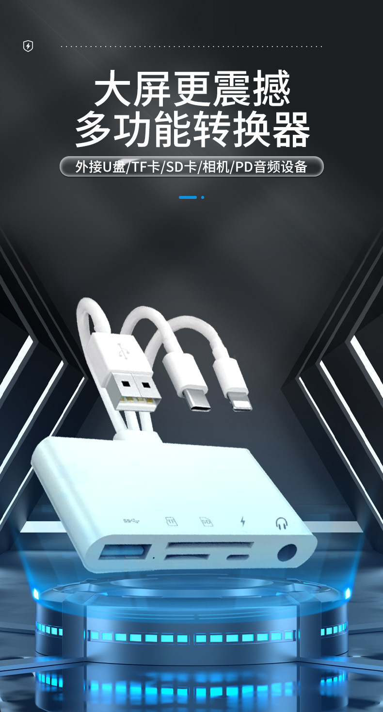 适用安卓苹果读卡器SD+TF+USB OTG Type-C多合一相机手机配件