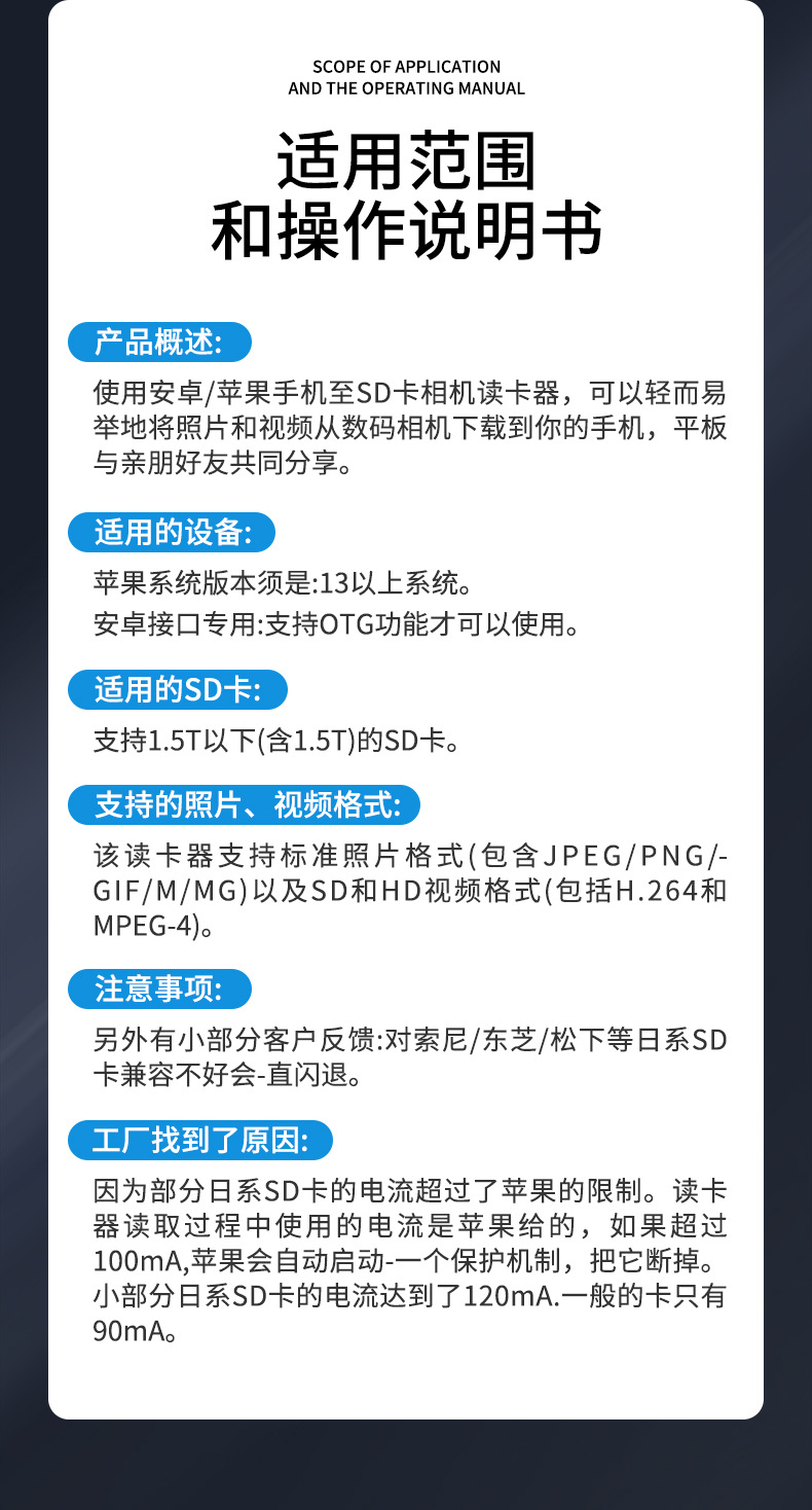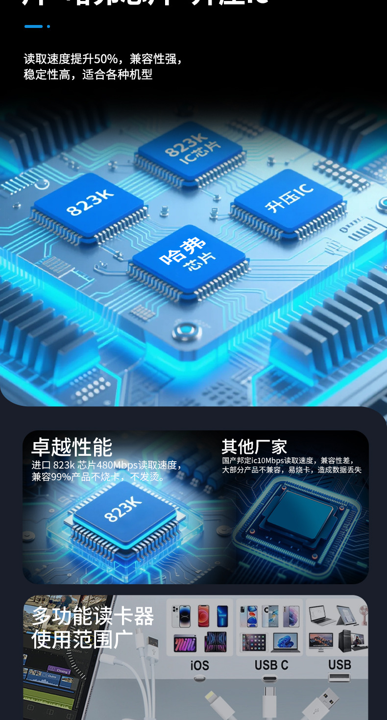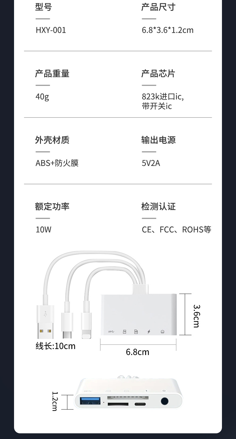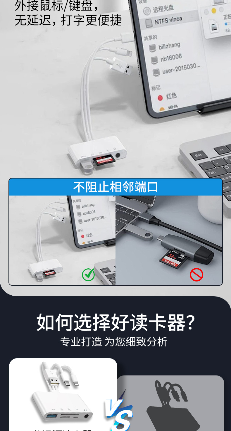 适用安卓苹果读卡器SD+TF+USB OTG Type-C多合一相机手机配件