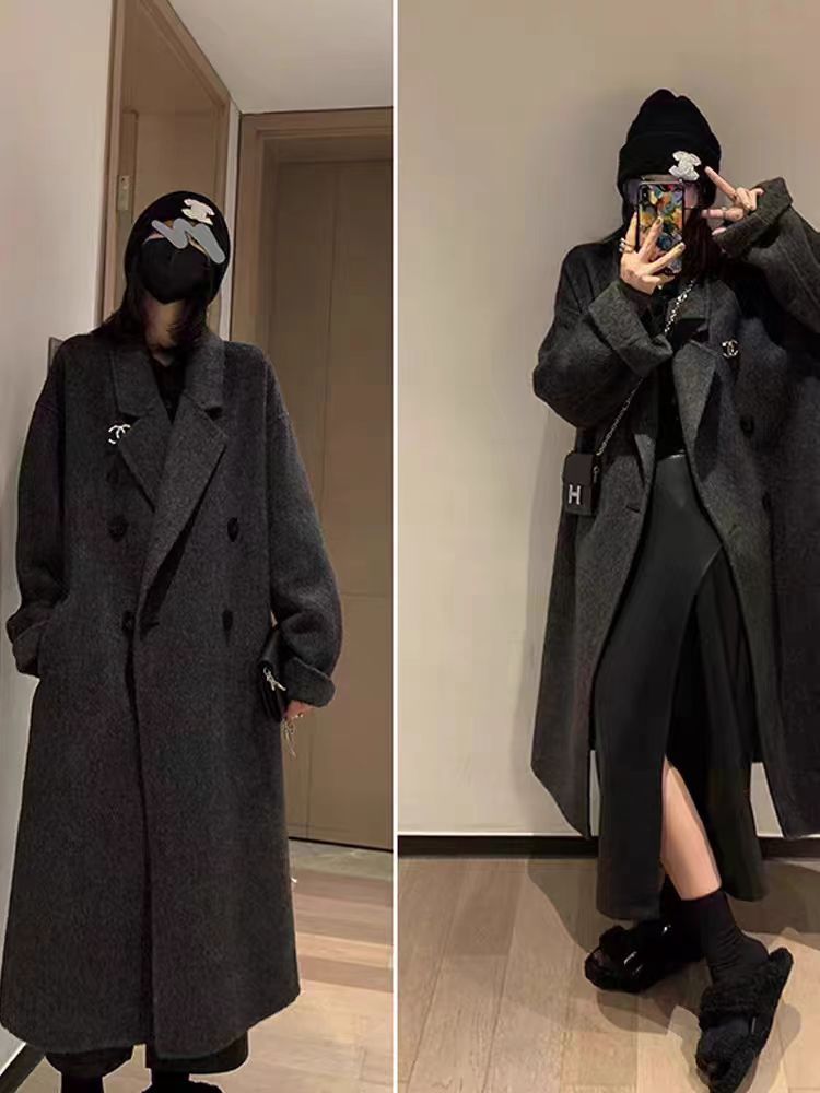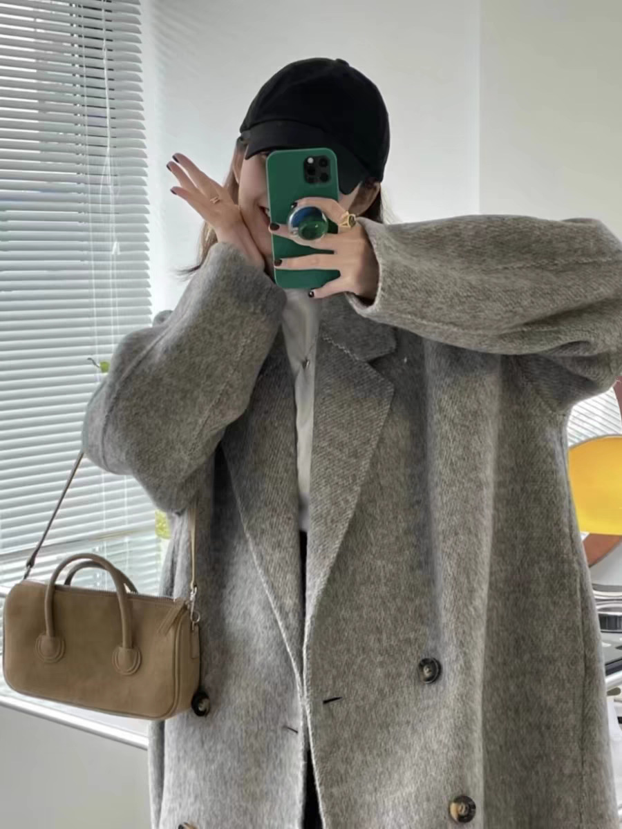2025秋冬高级感双面羊绒大衣女韩系宽松慵懒风气质显瘦羊毛呢外套
