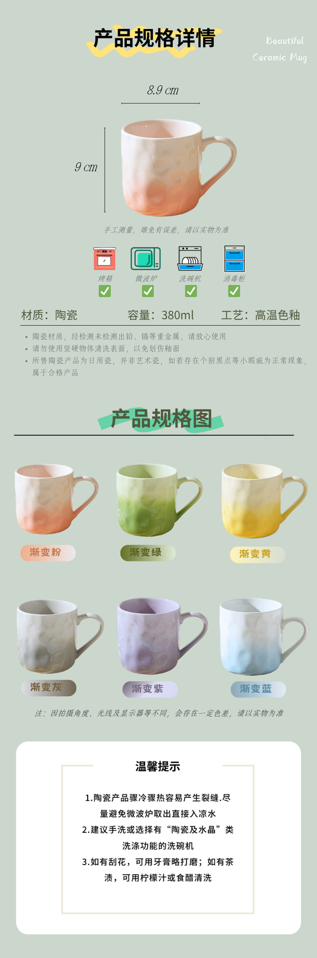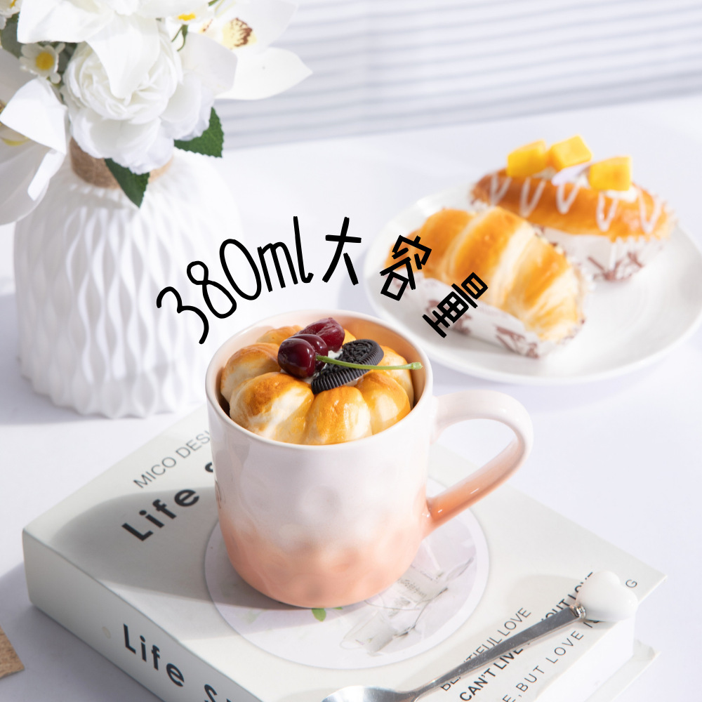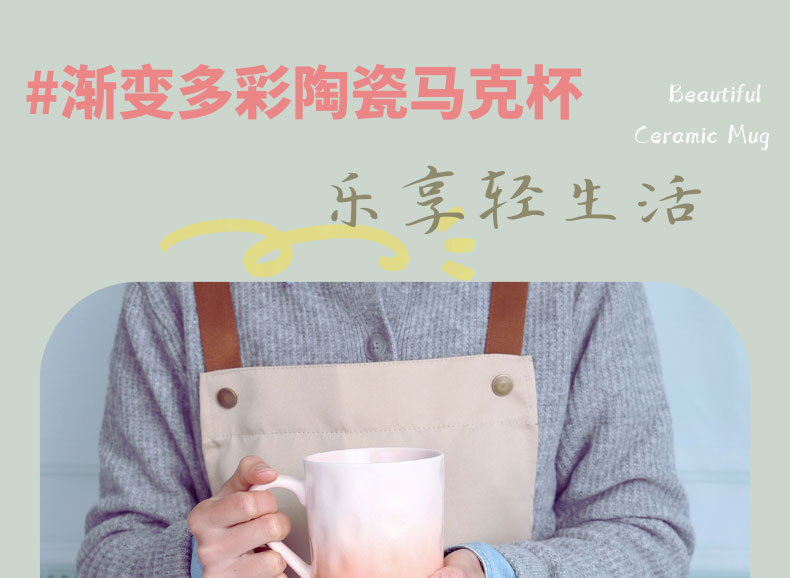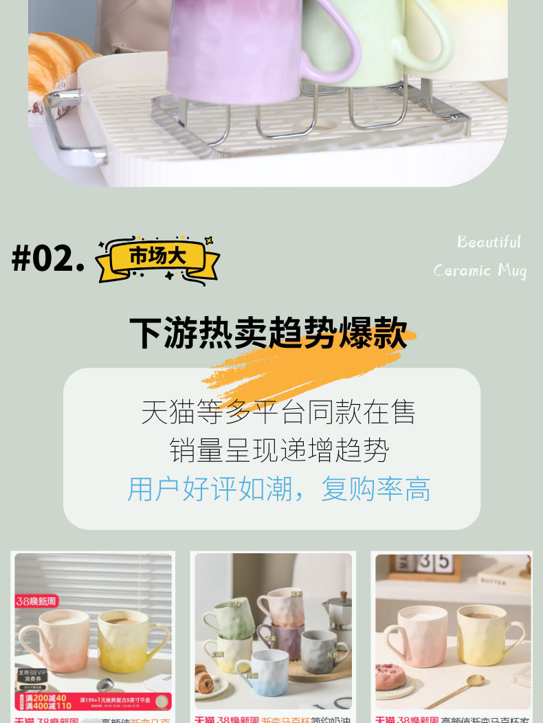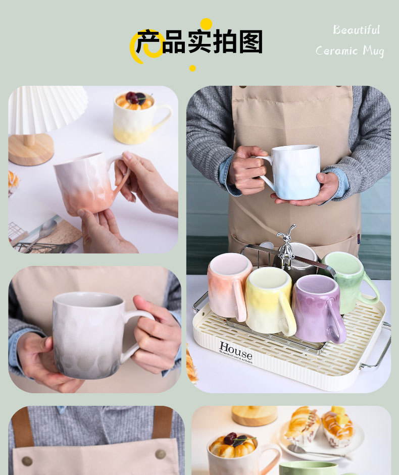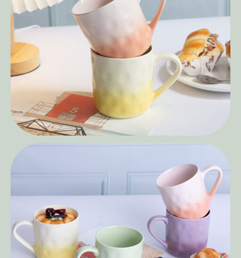 淘宝爆款高颜值奶油风早餐杯可订作釉下彩渐变马克杯陶瓷水杯家用