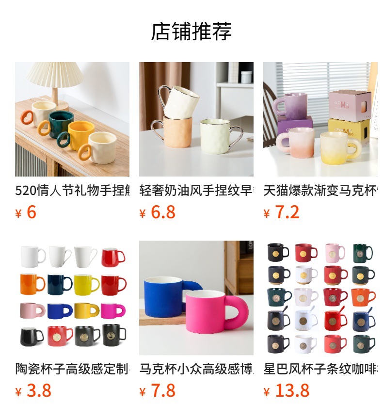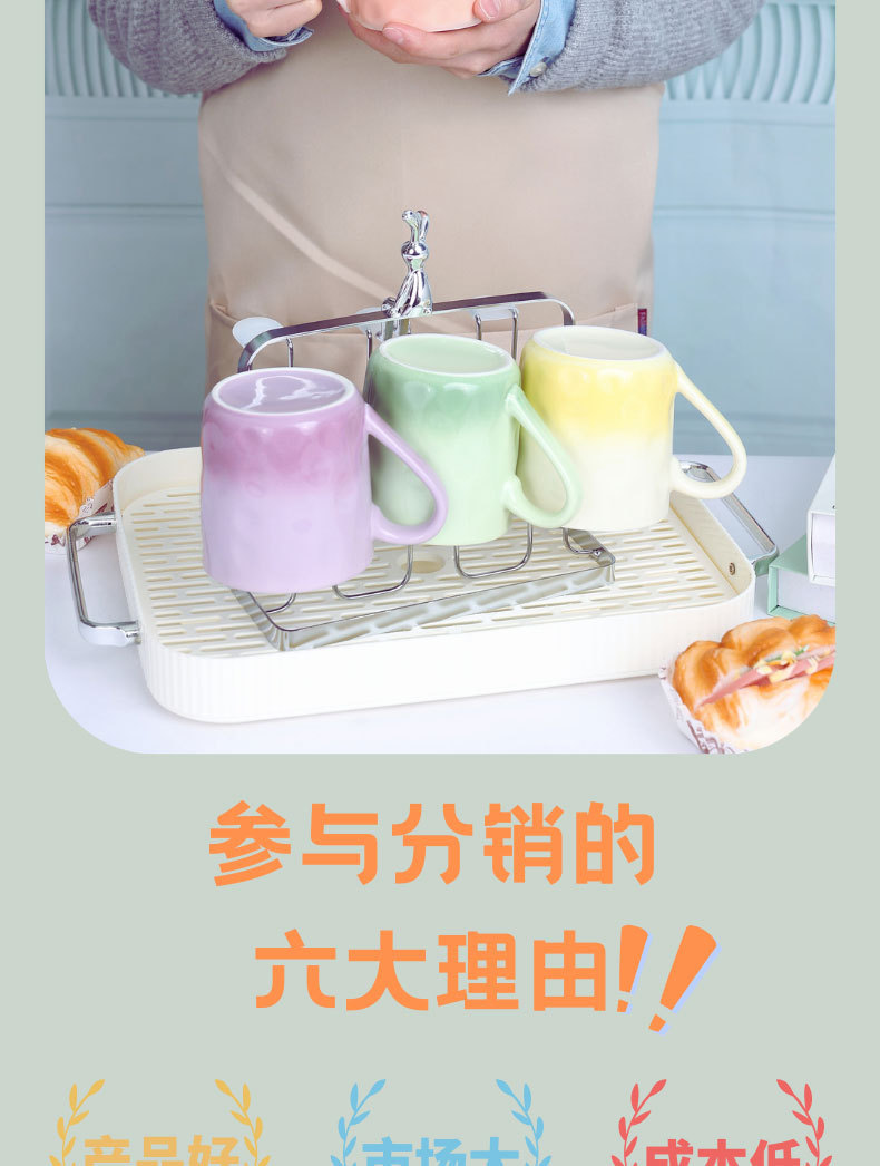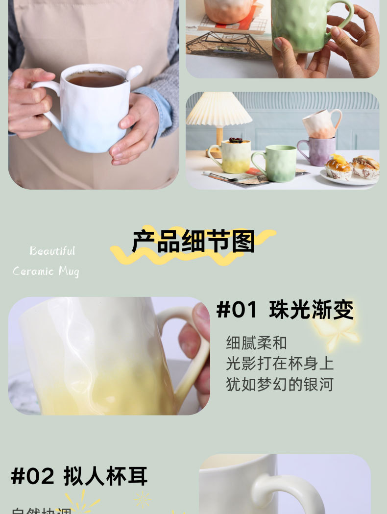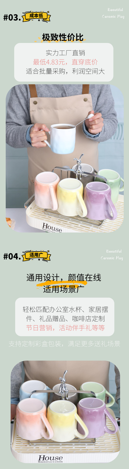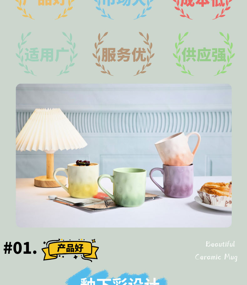 淘宝爆款高颜值奶油风早餐杯可订作釉下彩渐变马克杯陶瓷水杯家用