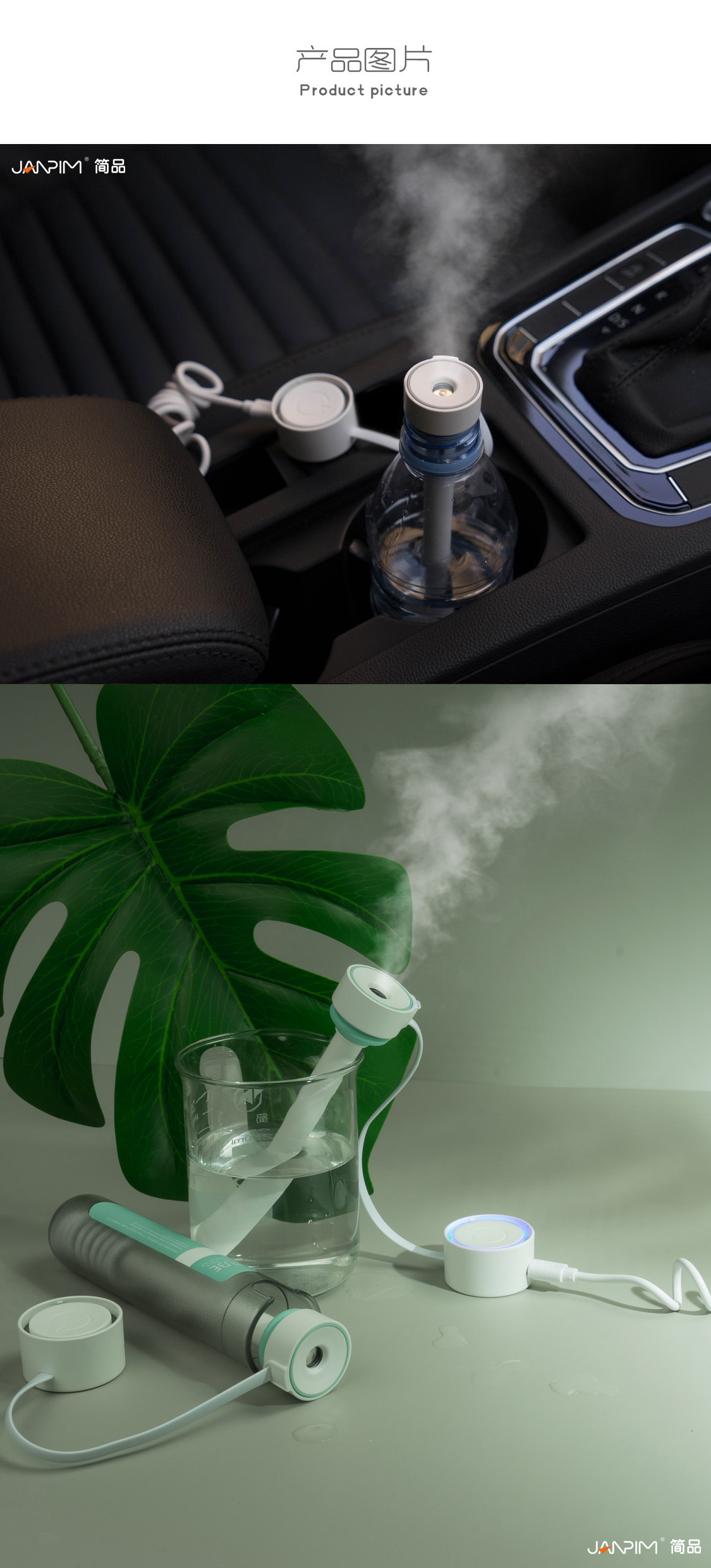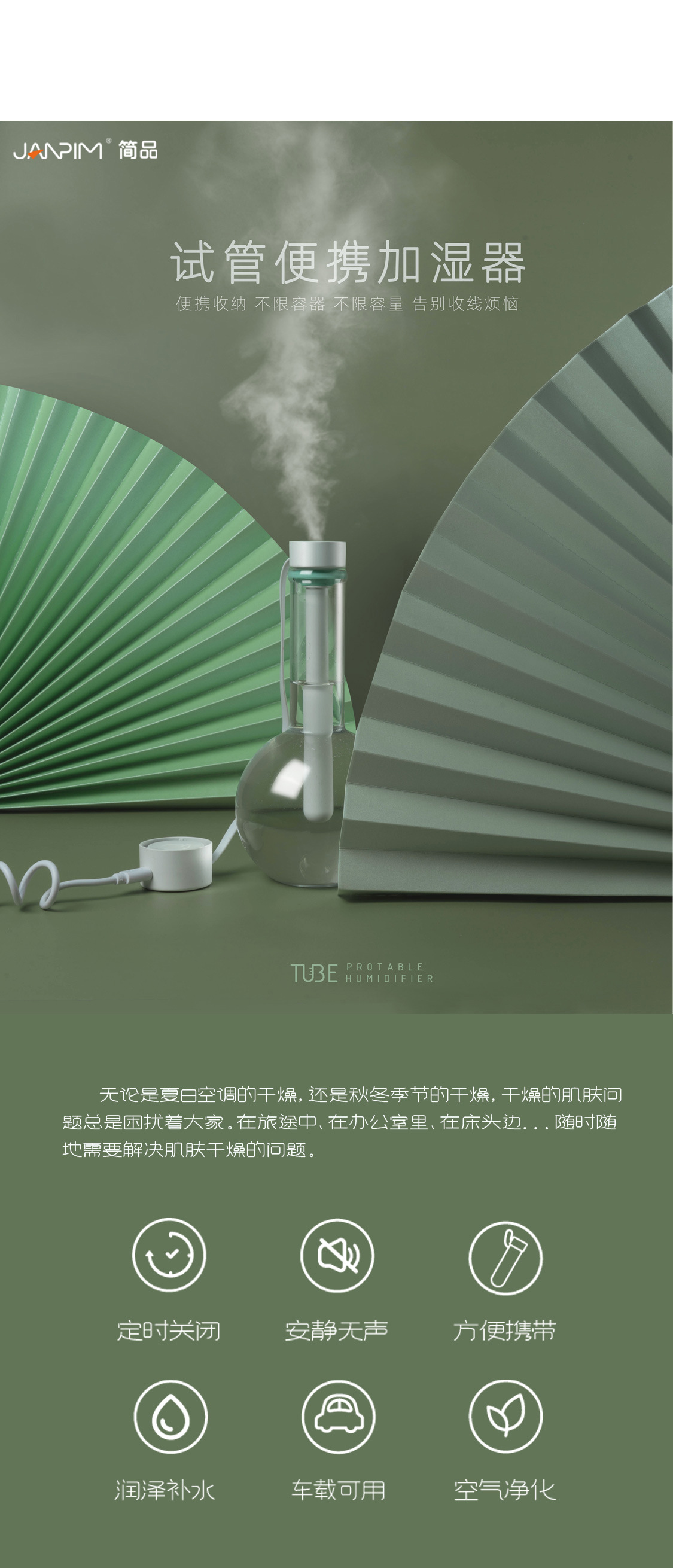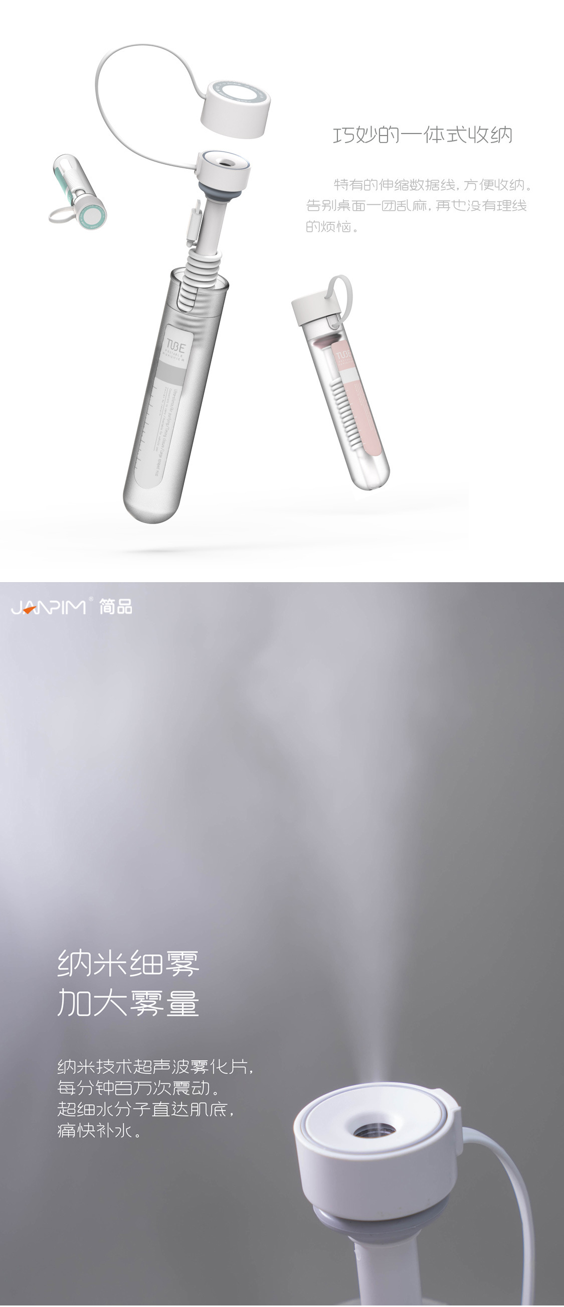 JANPIM厦门简品试管加湿器卧室用迷你插电款大喷雾车载跨境雾化器
