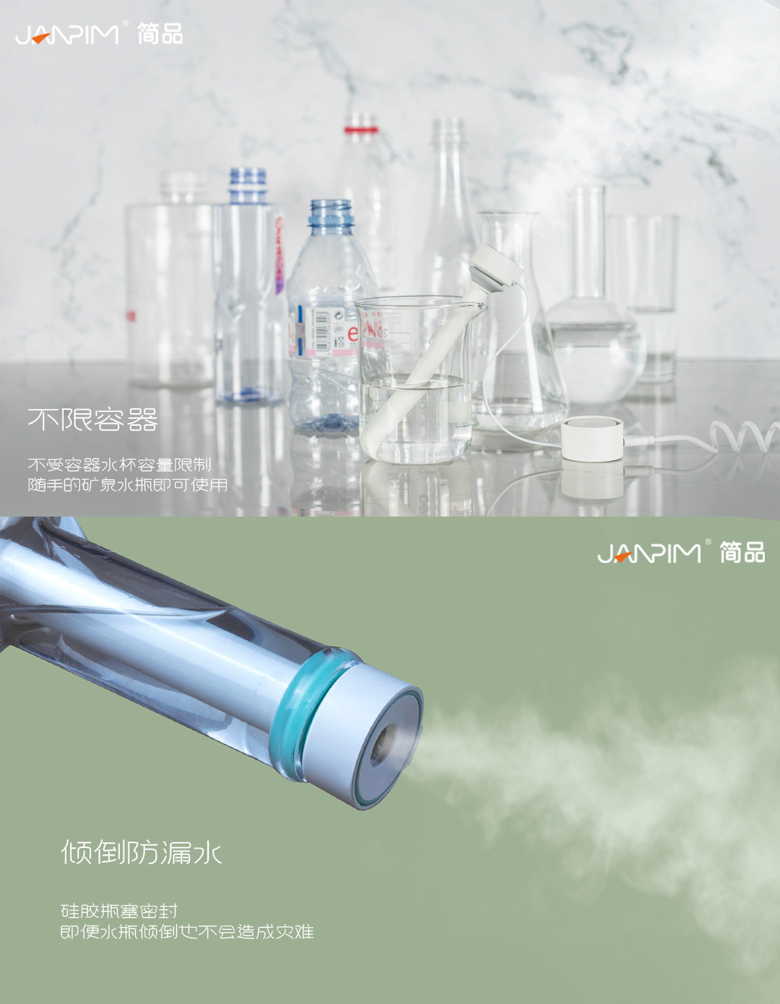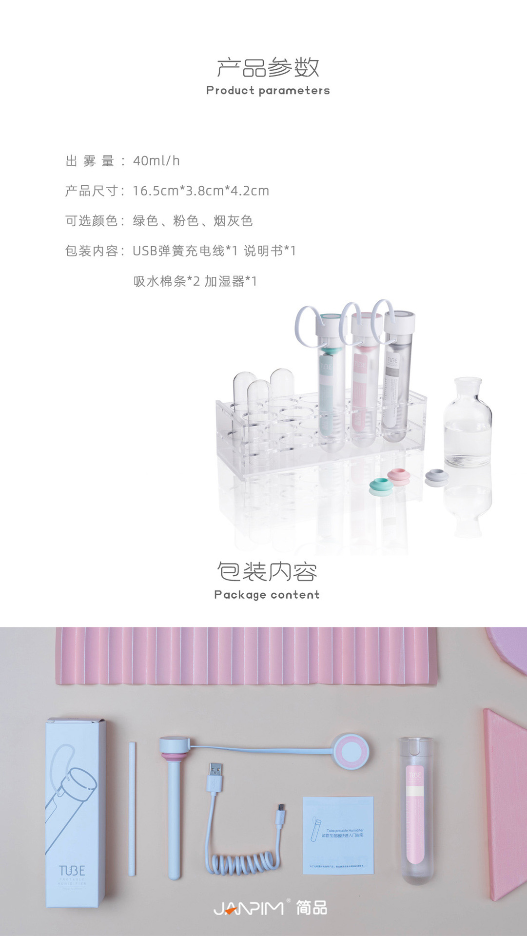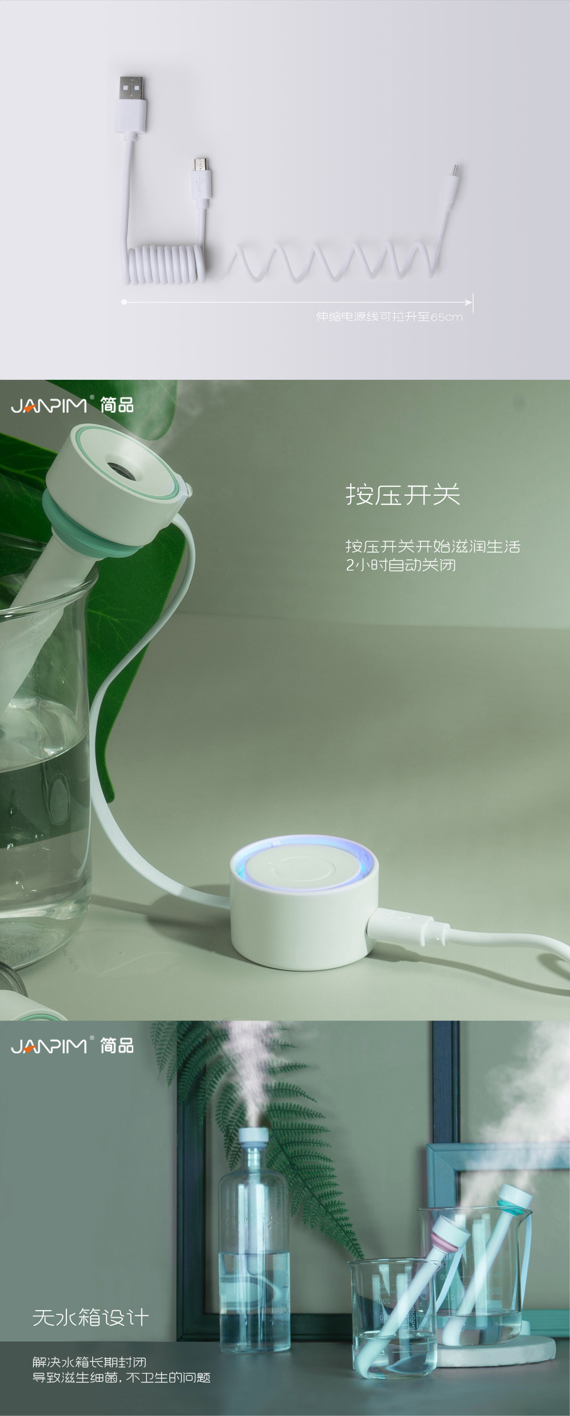 JANPIM厦门简品试管加湿器卧室用迷你插电款大喷雾车载跨境雾化器