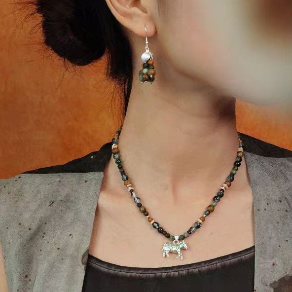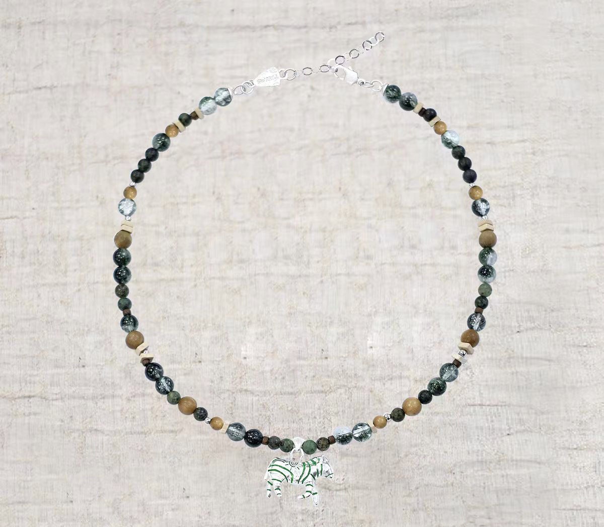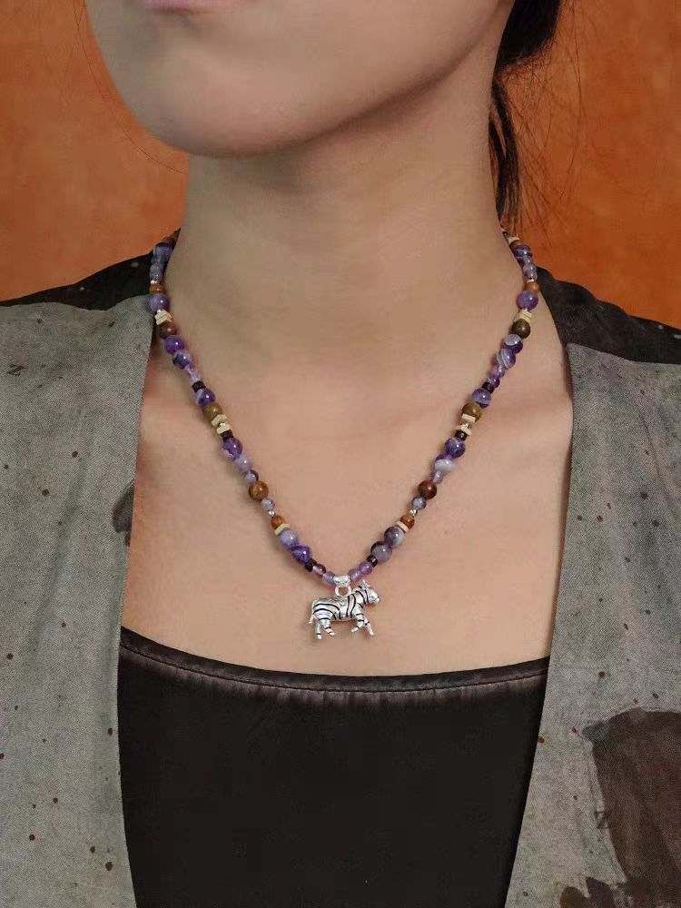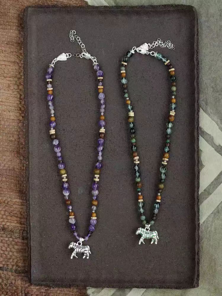 产品材质:黄铜电镀银、18K金+绿幽灵+紫水晶+红玛瑙+非洲松石+木珠隔片+非洲松石+进口木珠