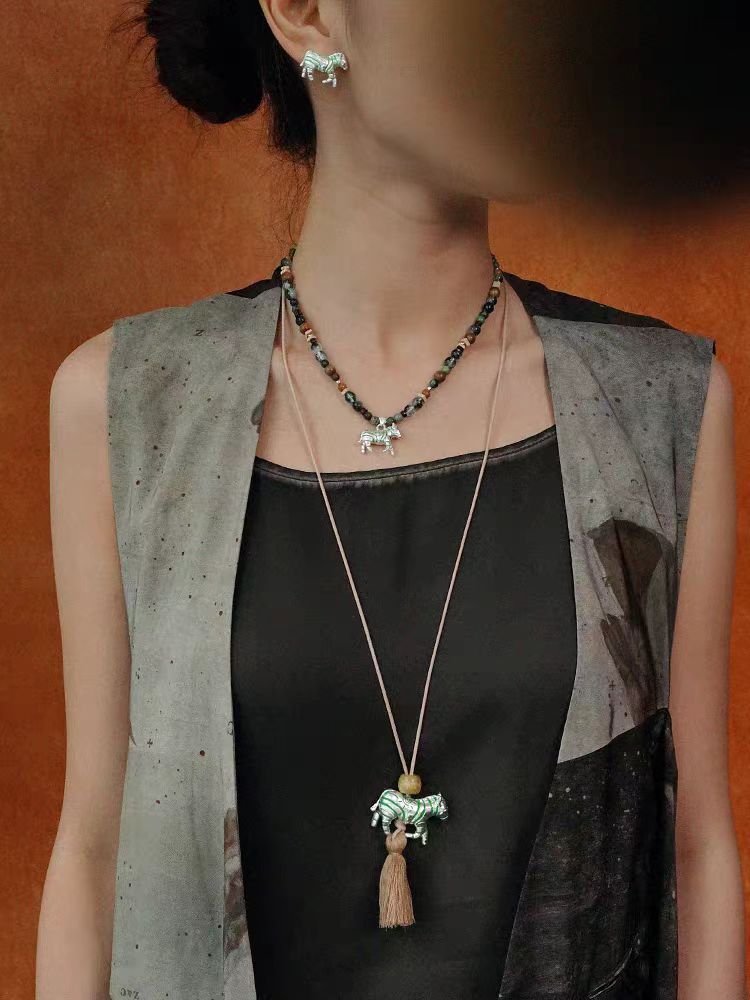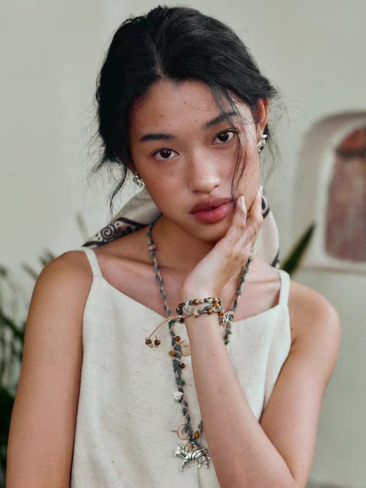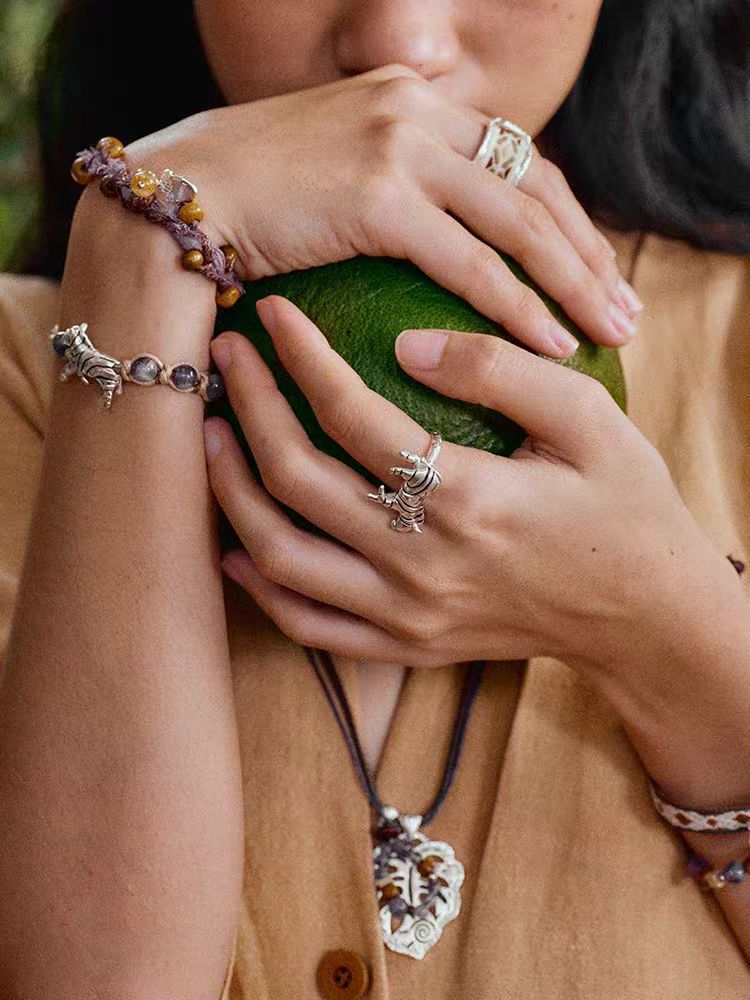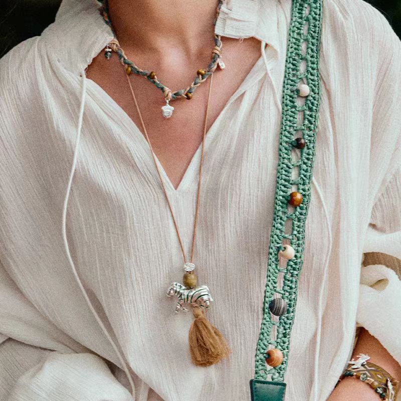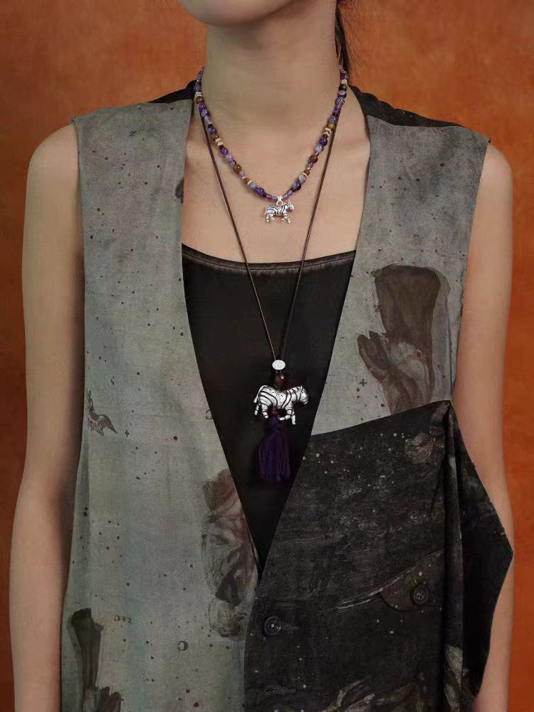 产品材质:黄铜电镀银、18K金+绿幽灵+紫水晶+红玛瑙+非洲松石+木珠隔片+非洲松石+进口木珠