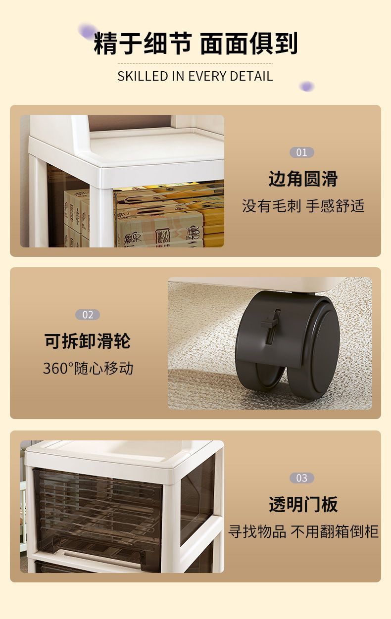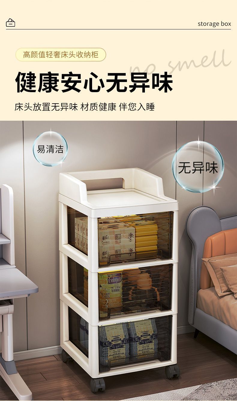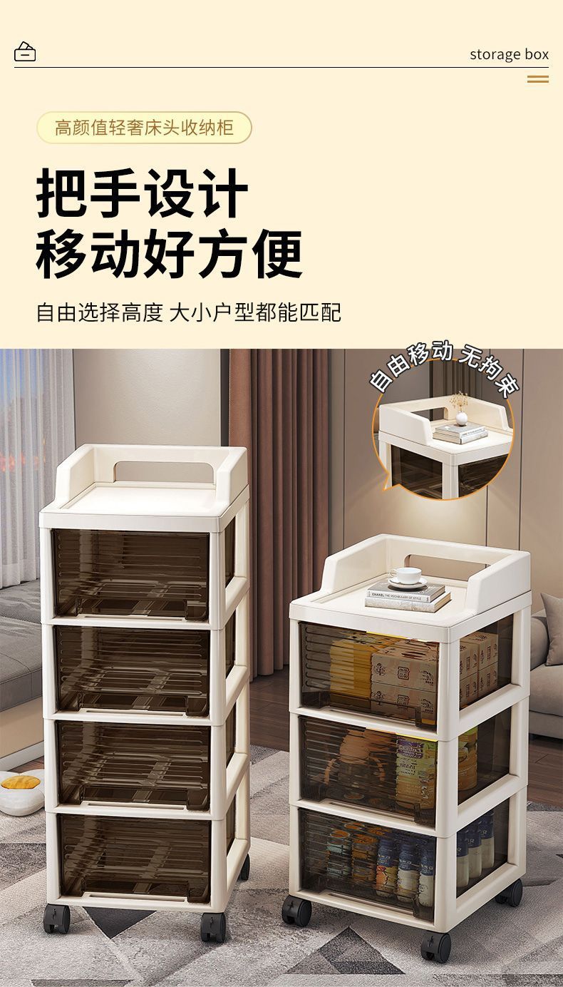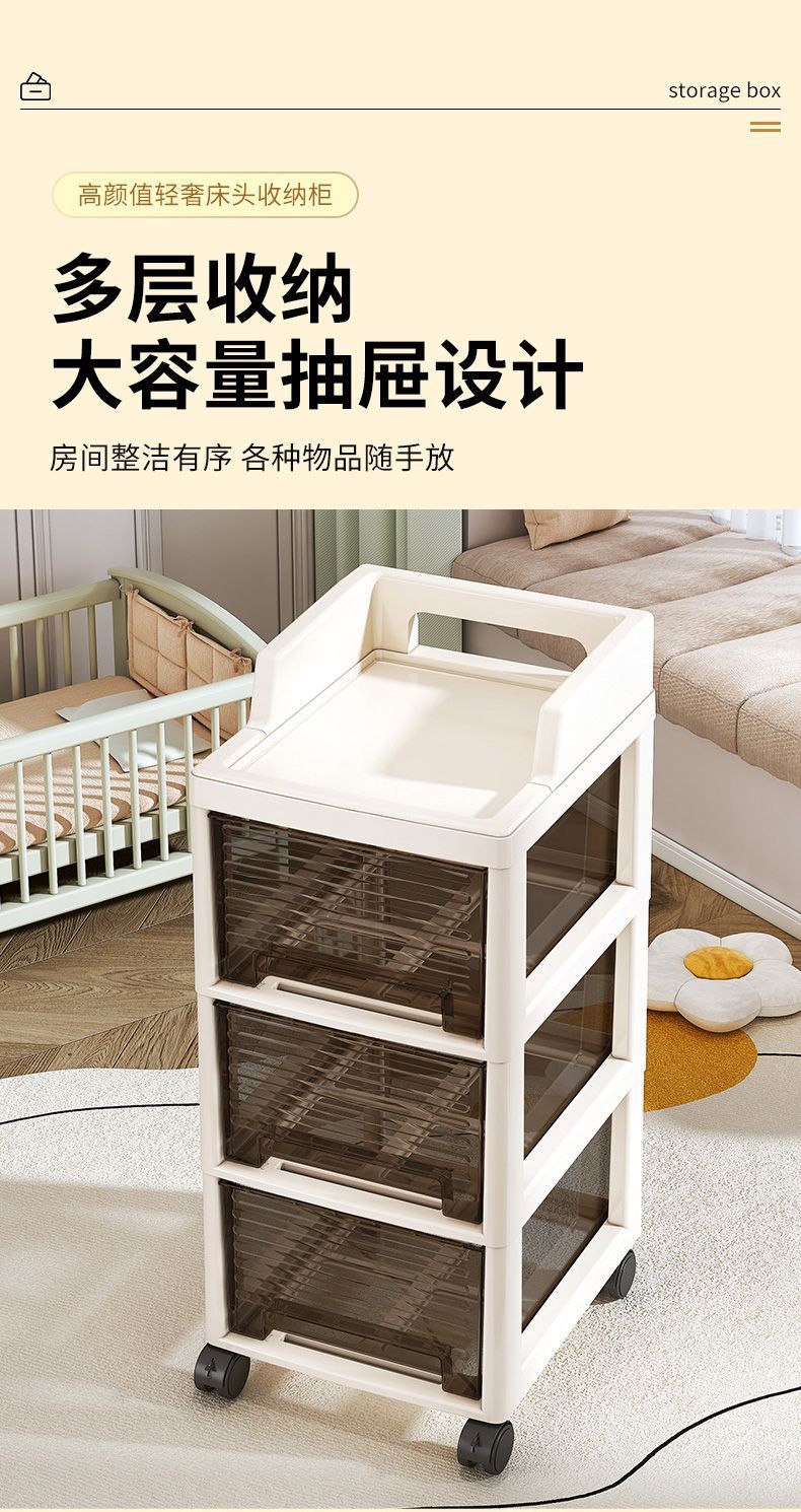抽屉式零食小推车置物架多层可移动客厅落地收纳柜卧室玩具储物柜