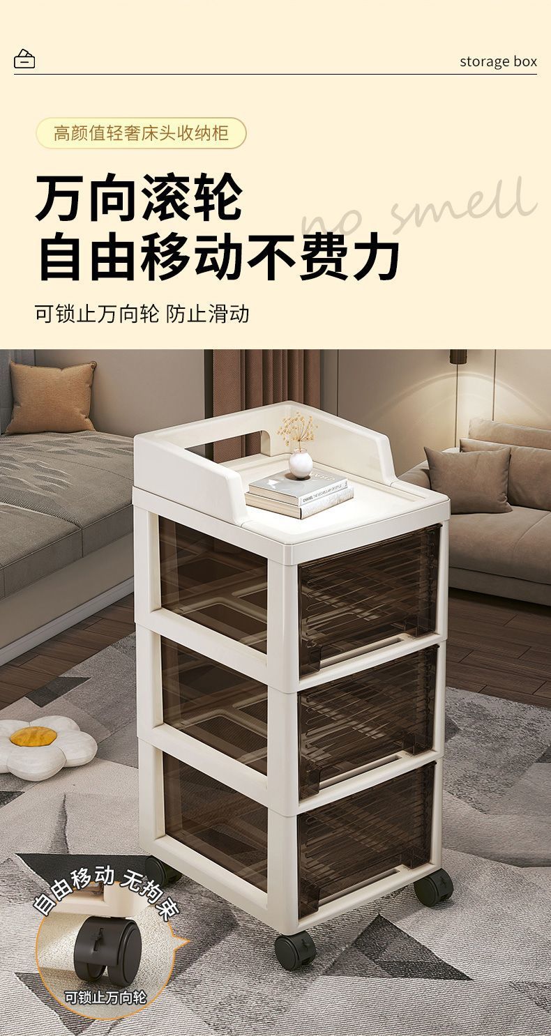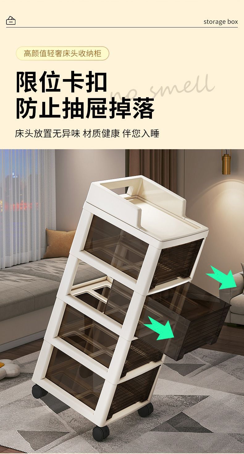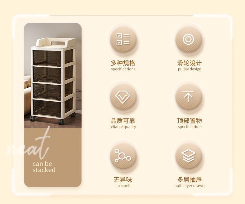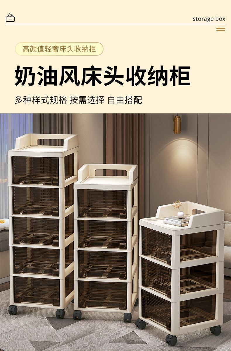 抽屉式零食小推车置物架多层可移动客厅落地收纳柜卧室玩具储物柜