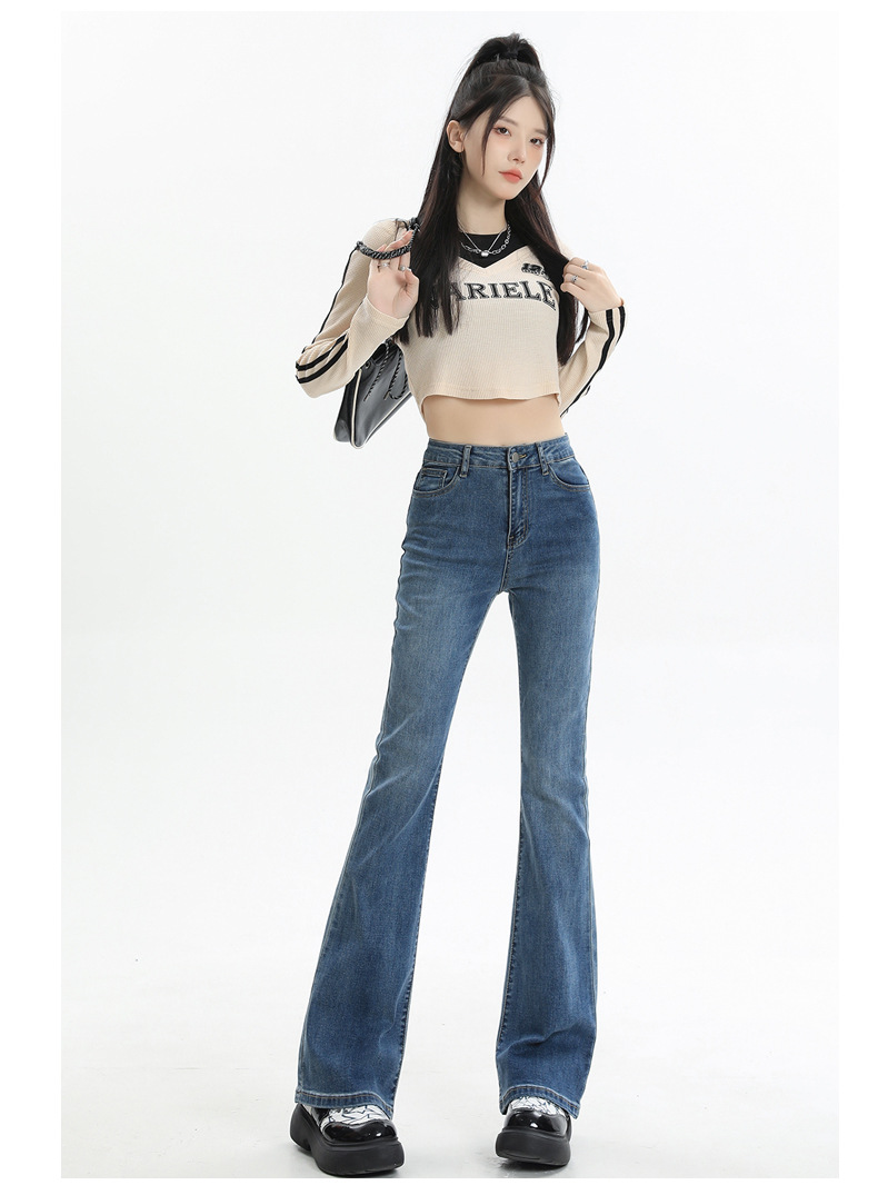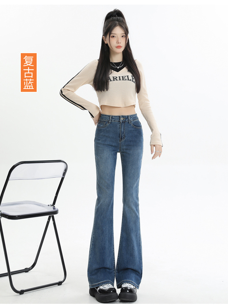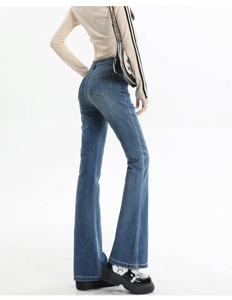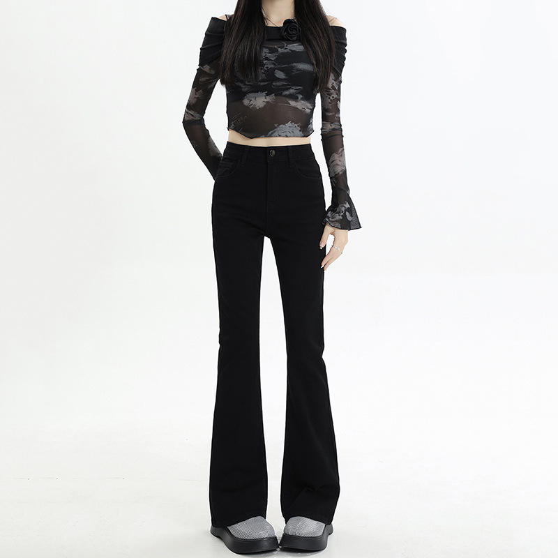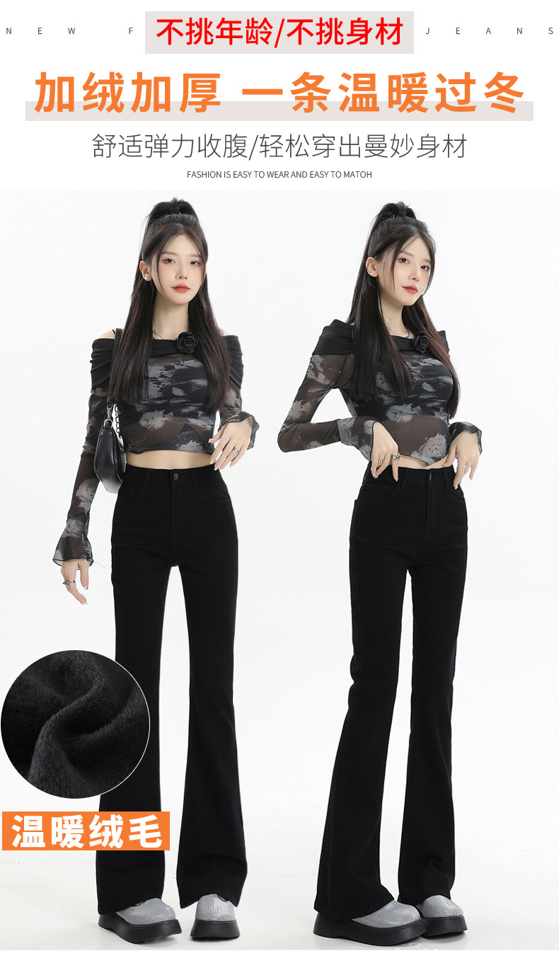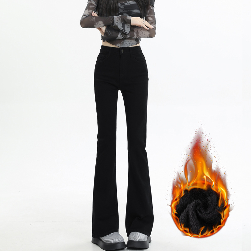 黑色微喇叭牛仔裤女加绒秋冬2025年新款高腰修身显瘦马蹄裤子