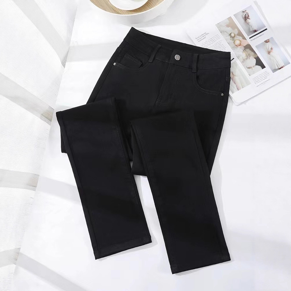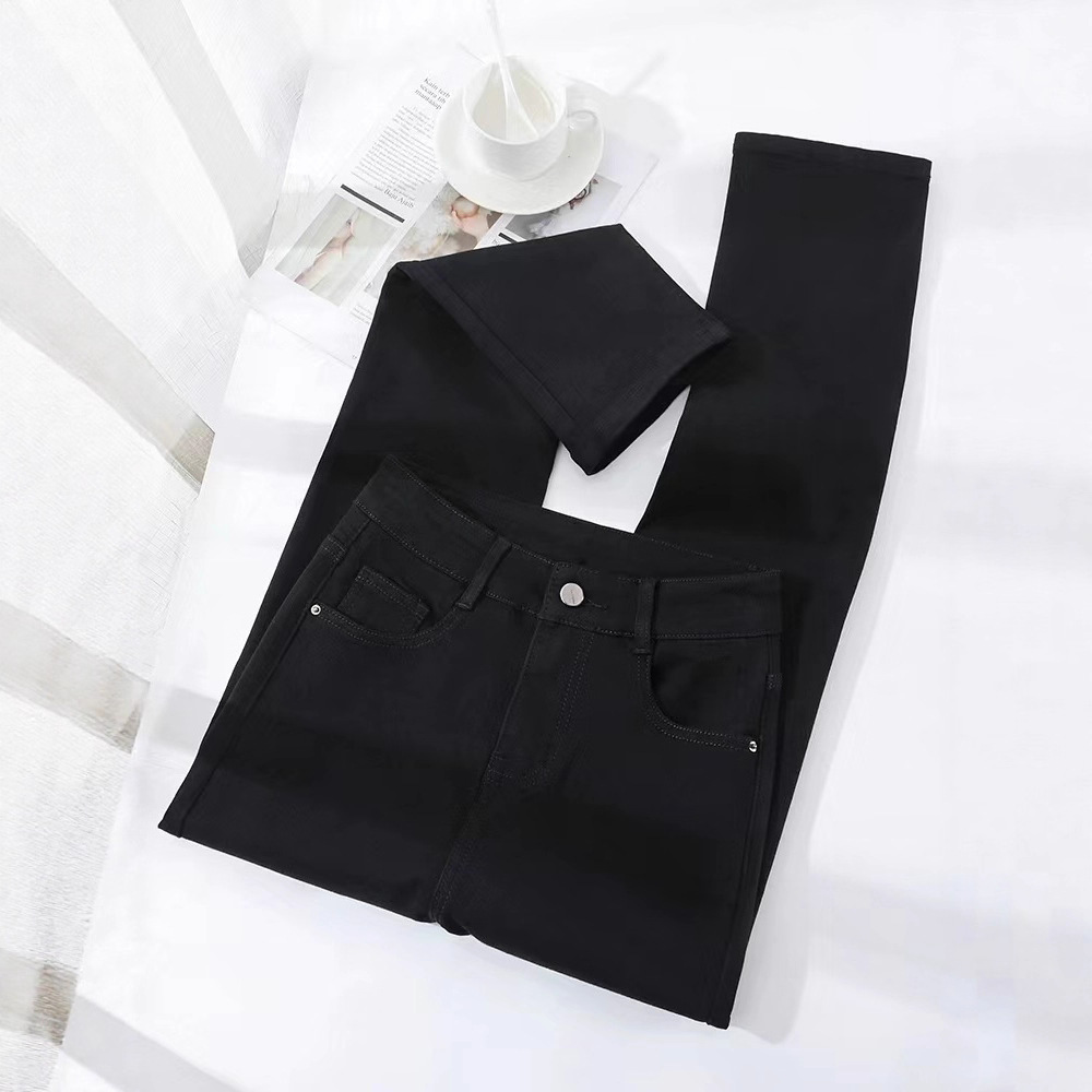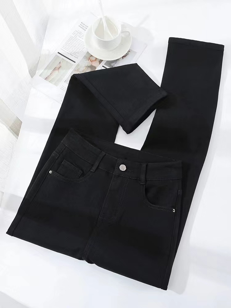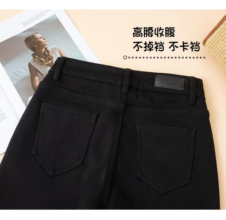 黑色高腰烟管直筒牛仔裤女2025秋冬季加绒九分小个子显高宽松显瘦