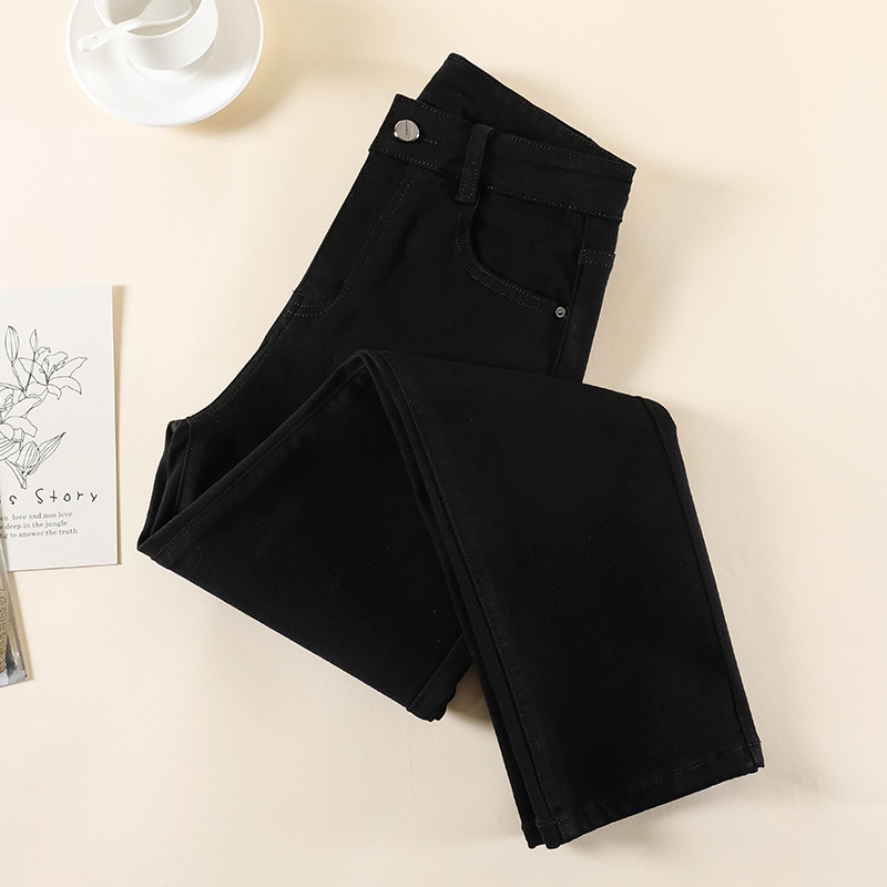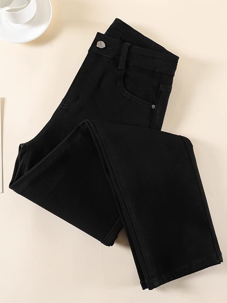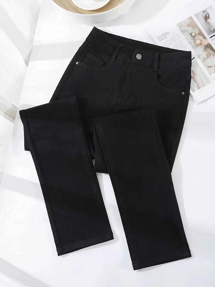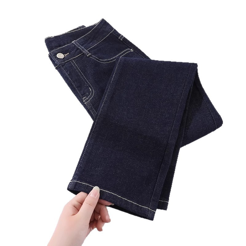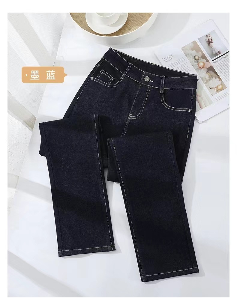 黑色高腰烟管直筒牛仔裤女2025秋冬季加绒九分小个子显高宽松显瘦